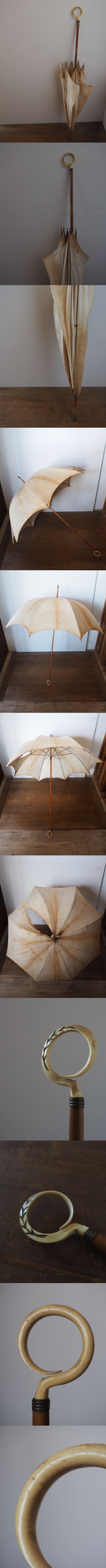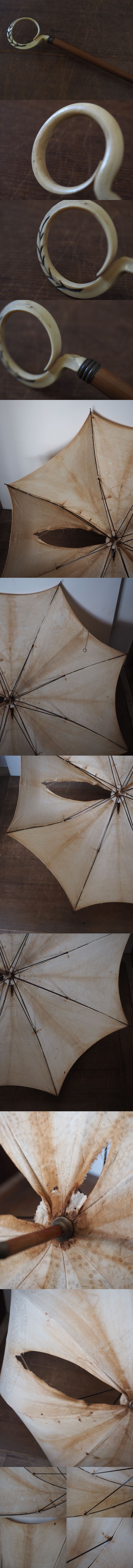 持ち手の先端部に欠け・石突部分に若干の歪み、生地の部分に大きな裂けがございます。