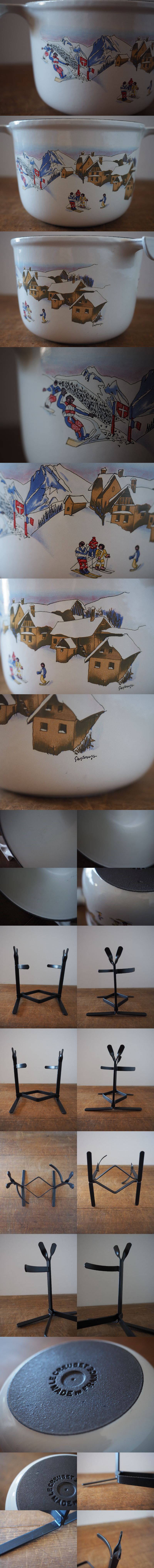 フランスヴィンテージ、LE CREUSET / ルクルーゼのmamaシリーズのフォンデュポット、アイアンのスタンド付き。