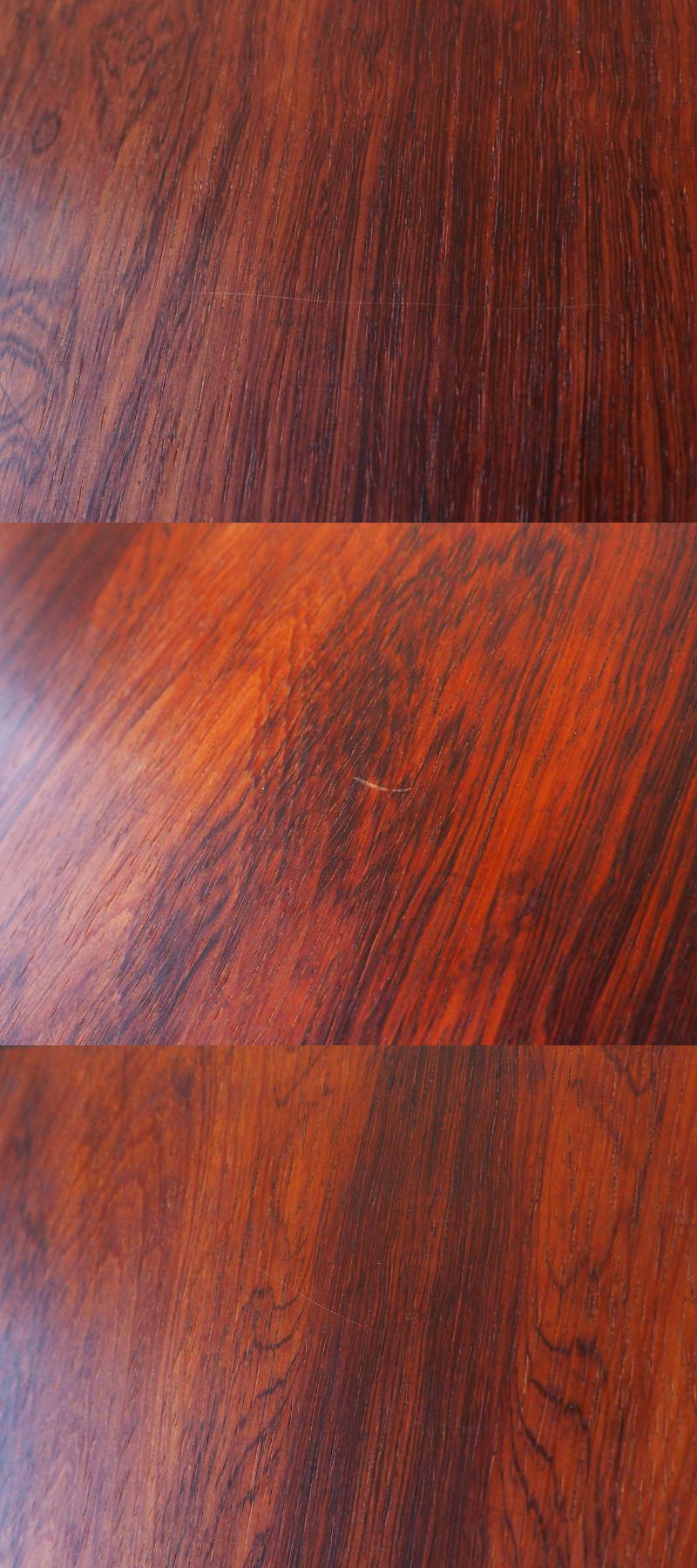 ローズウッドのプライウッド天板、脚部にはMADE IN DENMARKの刻印が見られます。